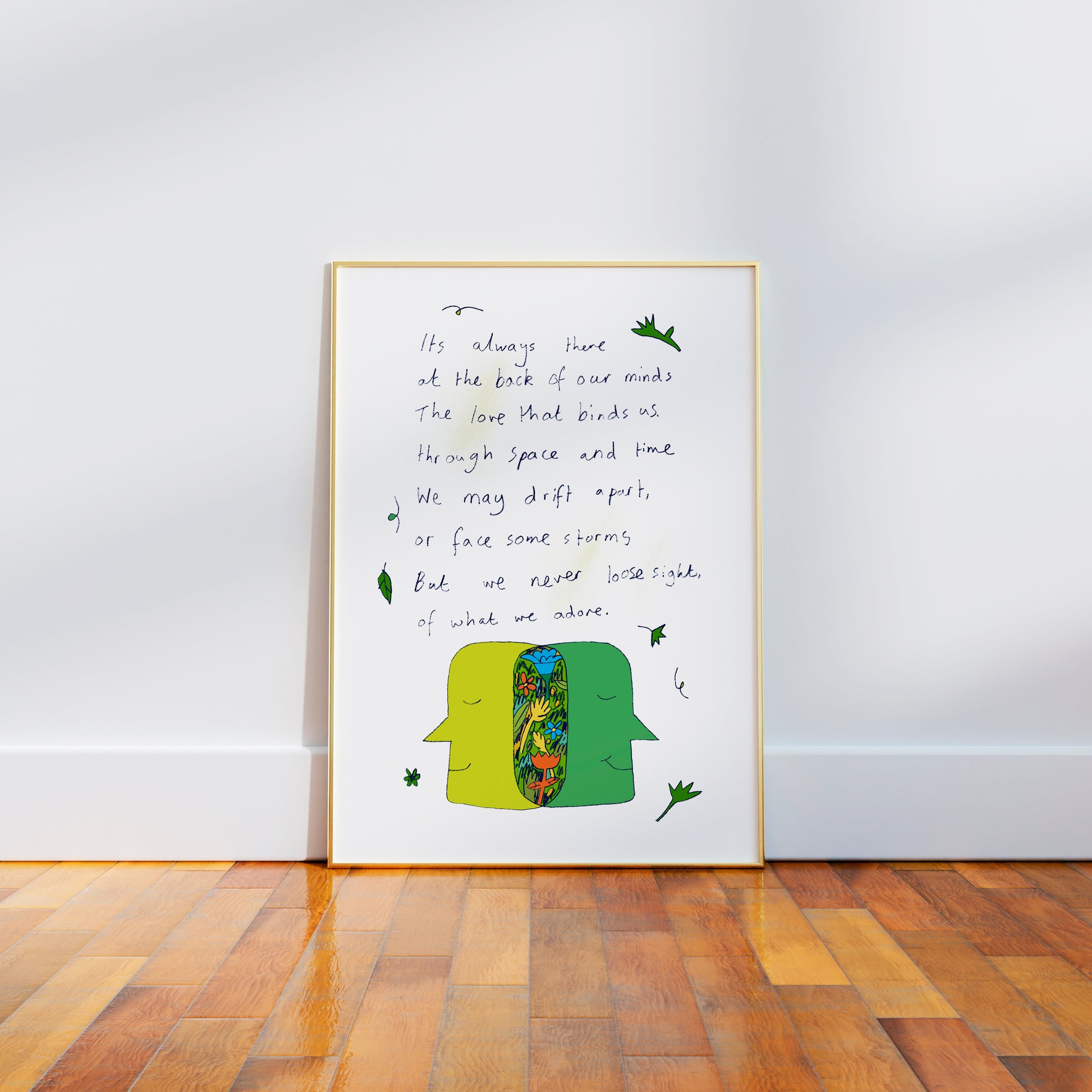 Let 'It's Always There' art print's heartfelt verses resonate in your space, a constant reminder that love, like art, is always present, guiding and comforting us through life's journey.