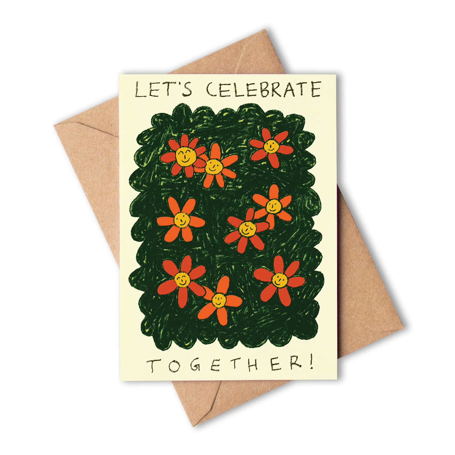 A perfect way to express joy, friendship, and the spirit of celebration. This card is adorned with a charming illustration of a flower bush, where a delightful group of flower friends gather to commemorate a special moment.